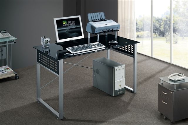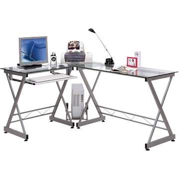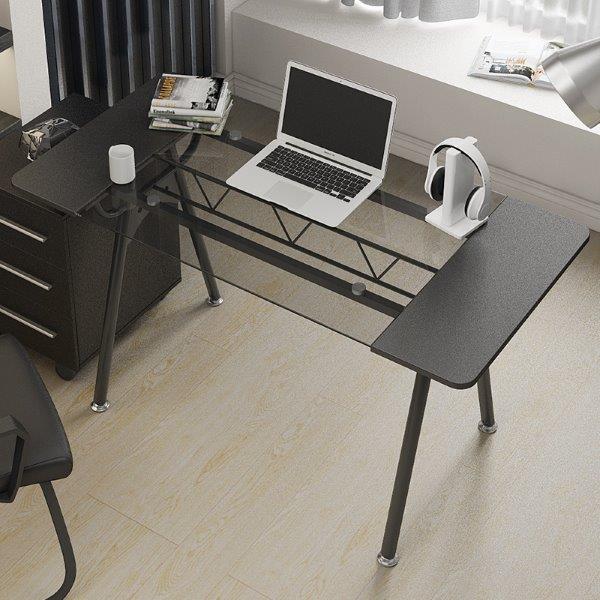 שולחן מחשב פינתי מזכוכית שקופה